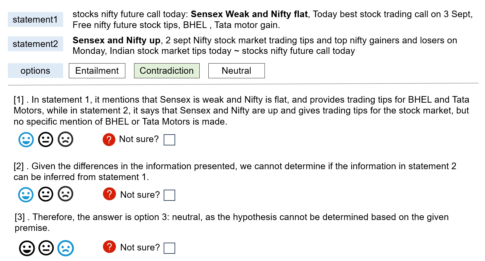 - Step Labelling Criteria Each reasoning step is evaluated and assigned a label based on its correctness: ‘positive’(score of ‘1’), ‘neutral’ (score of ‘0’), and ‘negative’ (score of ‘-1’). A step receives a positive score if it accurately meets logical and computational requirements, correctly interprets the task, and contributes to deriving the correct answer. A neutral score is awarded if the step is correct but does not aid in reaching the correct conclusion. Conversely, steps that contain logical ,computational, or factual inaccuracies, or are irrelevant to the given context and question, are assigned a negative score of -1